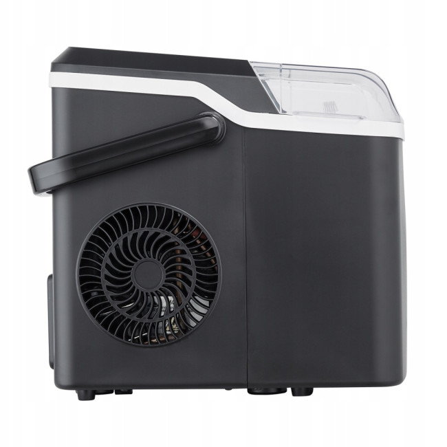 Пристрій оснащений функцією самоочищення, прозорою кришкою для контролю процесу та зручною ручкою для перенесення. Завдяки тихій роботі (до 42 дБ) льодогенератор не заважає вдома або в офісі.