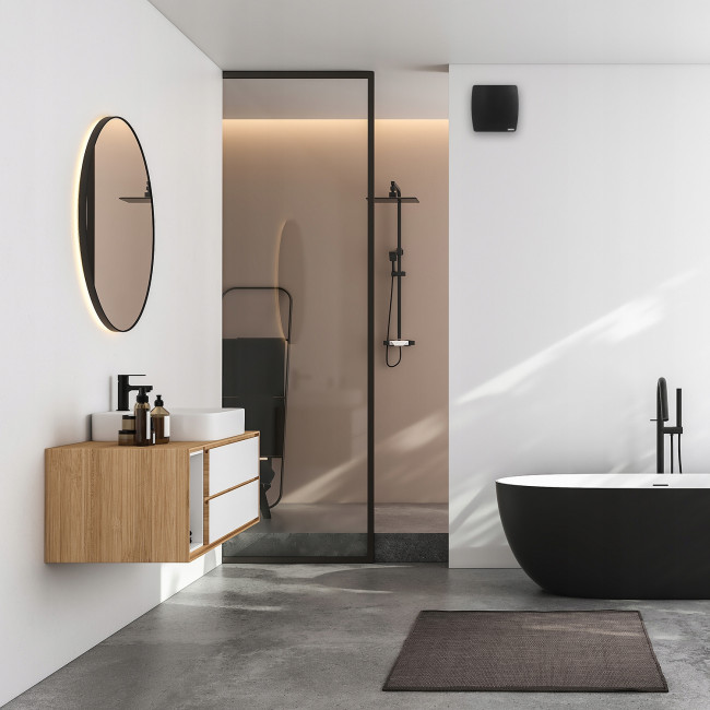 Вентилятор для ванної кімнати EBERG AXI 120 BT відрізняється компактною плоскою конструкцією та стильним дизайном . Корпус виготовлений з ударостійкого матеріалу ABS. Передня панель вентилятора виконана з матового алюмінію . Цей матеріал легкий, стійкий до корозії та легко чиститься, що означає довговічність та елегантність. Використання шарикопідшипників забезпечить ефективну, тиху та безвідмовну роботу протягом тривалого часу.